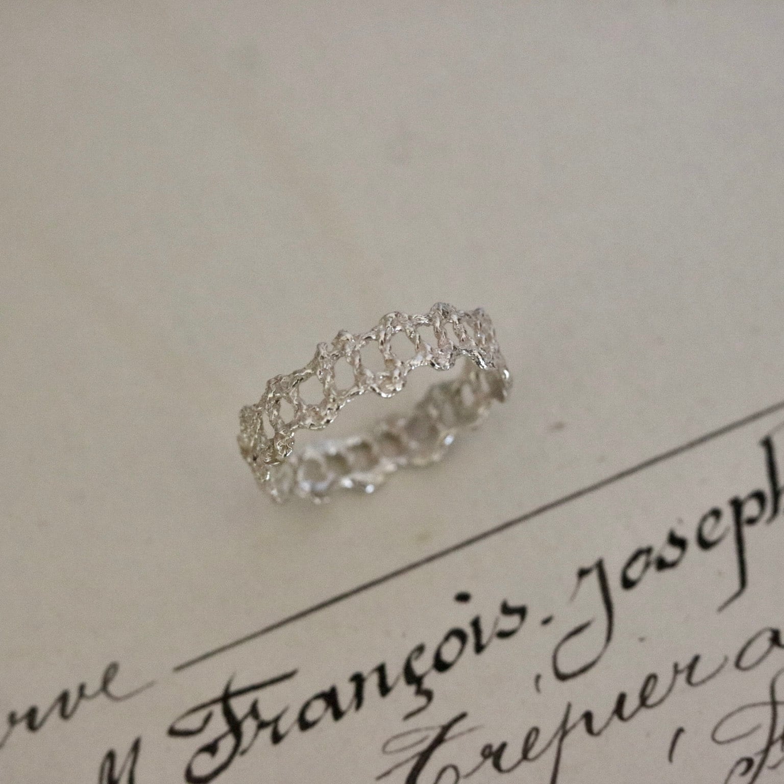 フランスのアンティークレースから型を取って鋳造したリングです。